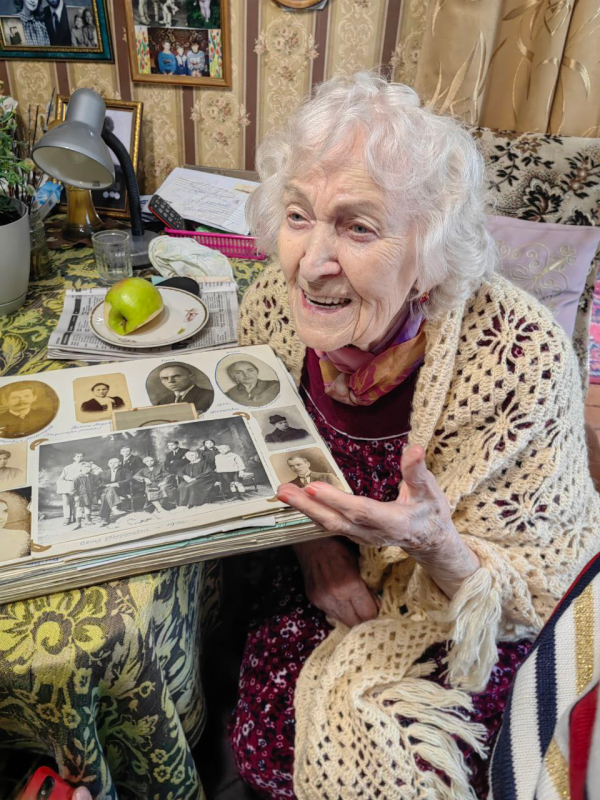 Зое Петровне уже 101 год. Она поразила гостей бодростью духа и прекрасной чистой речью. На протяжении нескольких часов Зоя Петровна рассказывала о своей интересной и непростой жизни, подкрепляя рассказ фотографиями. Эти фотоальбомы бережно хранятся владелицей и имеют уже не только семейную, но и историческую ценность.