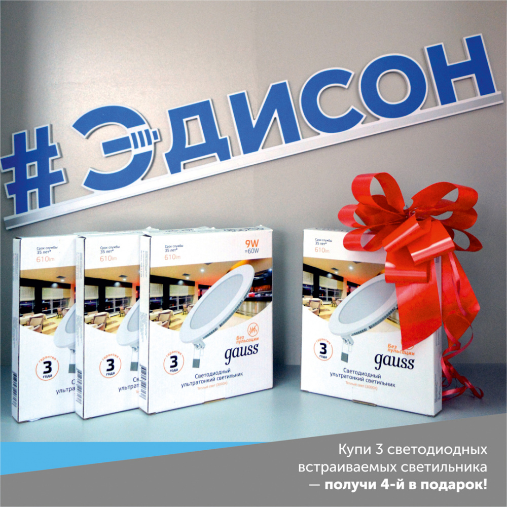 Акция проходит в период с 01 по 31 августа 2019 г. В акции участвуют все магазины сети Центр света «Эдисон», а также интернет-магазин. В акции участвуют все магазины сети Центр света «Эдисон», а также интернет-магазин Списать бонусы при покупке товара, участвующего в акции, невозможно. Перечень и количество товара ограничены. Подробности в местах продаж.