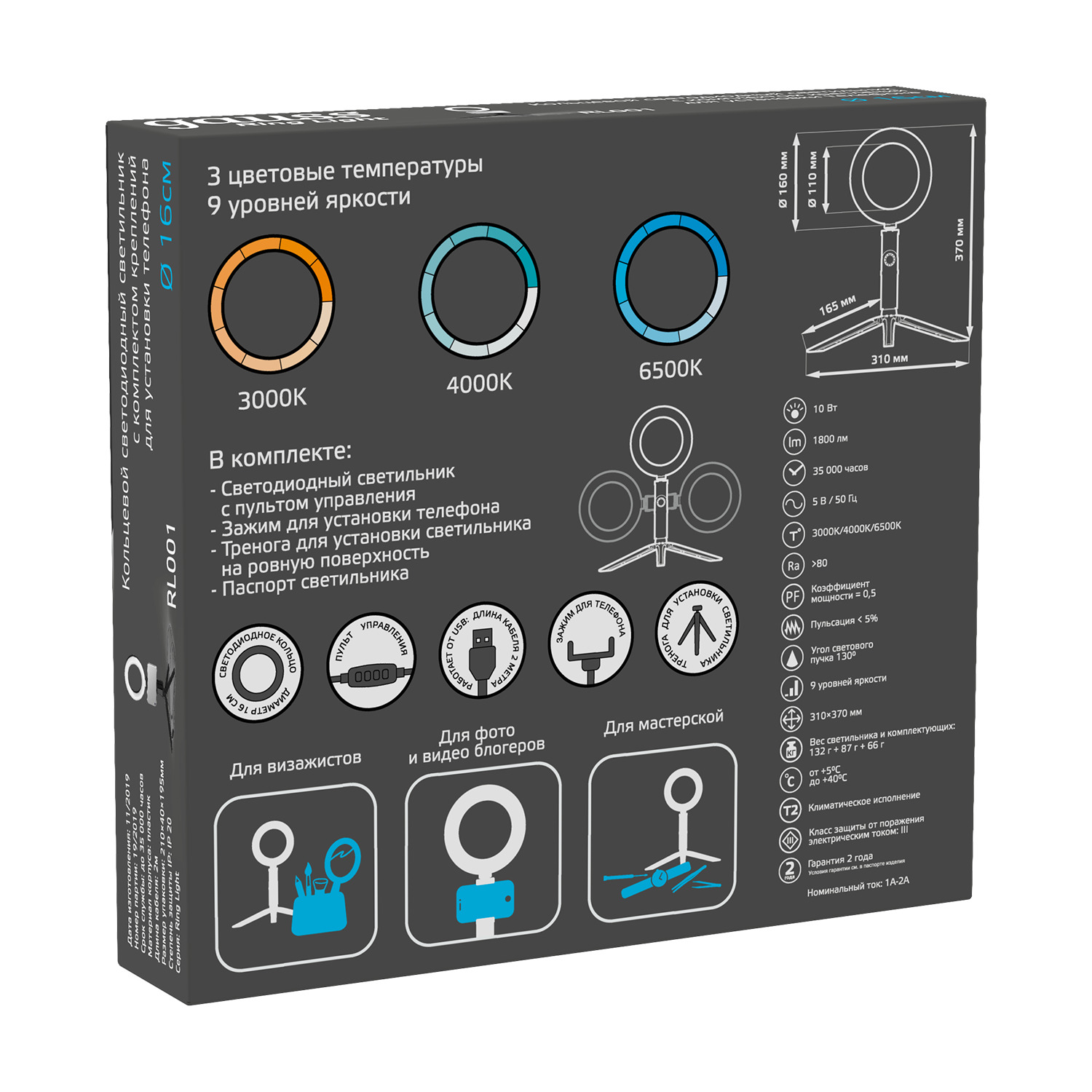 Кольцевой светильник Gauss Ring Light мощностью 10 Вт, световым потоком 600 Лм и размерами 160*23 мм, предназначен для макросъемки. Он обеспечивает необходимый мягкий свет и более сфокусированное освещение по сравнению с лайтбоксом, и позволяет лучше выделить самые мелкие детали снимаемого объекта. Такие светильники являются универсальными и могут с одинаковым успехом использоваться для акцентного освещения, в качестве основного источника света или как декоративный элемент в кадре.