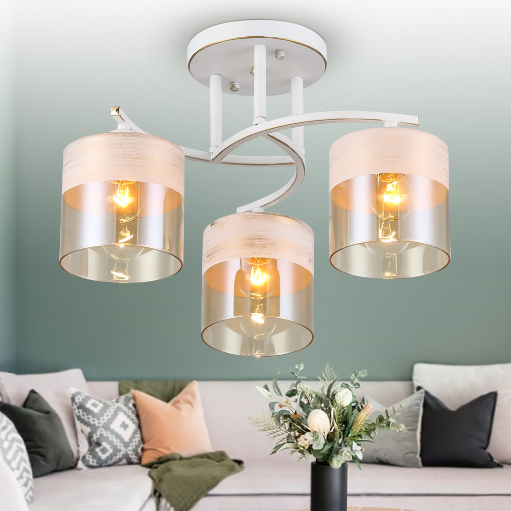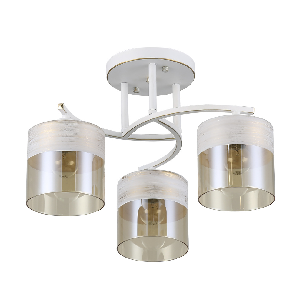 Rivoli Constancia (арт. 9081-303) - светлая дизайнерская люстра на потолок из металла и стекла. Бело-золотой корпус люстры окрашен в технике декоративного состаривания - удачное решение для создания стиля прованс и в целом уюта в доме. Плафоны с теплым золотистым тонированием имеют белый ободок в верхней части. Количество плафонов - 3. Они мягко рассеивают свет и качественно освещают площадь 9 м². Арматура люстры аккуратная, с плавными линиями. Люстры потолочные Constancia от итальянского бренда Rivoli формируют в доме спокойное умиротворенное настроение.