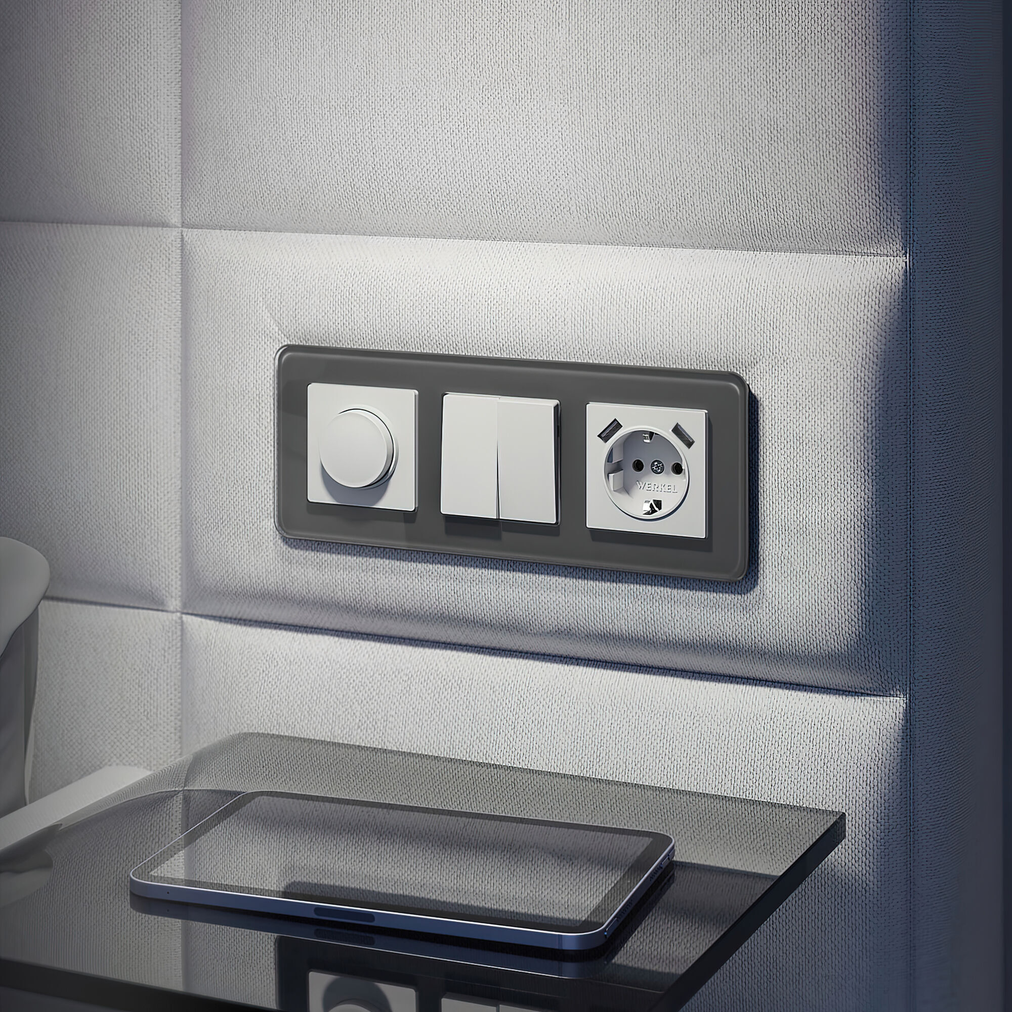 Механизмы с матовыми накладками комбинируются с любыми рамками Werkel. Совместимость дает большой простор в создании множества уникальных сочетаний.