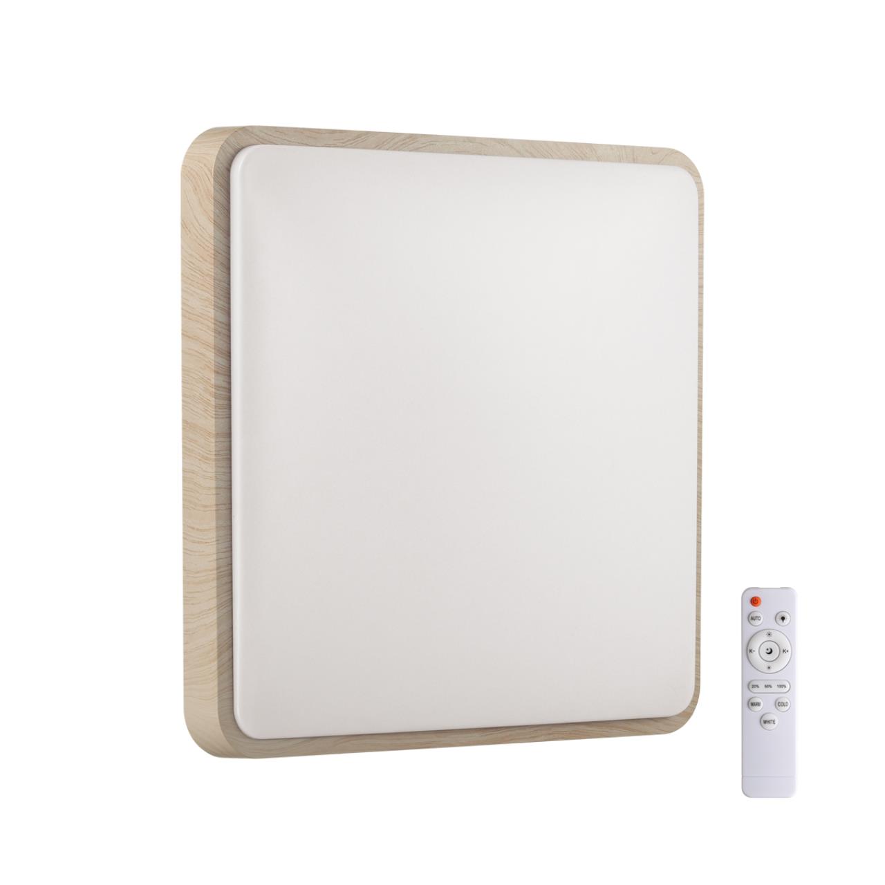 Светильник 7608/DL линии MERTO состоит из металлического основания (базы) и пластикового рассеивателя. Материал рассеивателя - высококачественный пластик марки PMMA 2.0 белого цвета с матовой поверхностью, без текстуры. Пластик обеспечивает светильнику равномерное рассеивание и хорошее светопропускание. Форма плафона: квадратная, декорирована ободом из пластика бежевого цвета "под дерево". Степень защиты IP43 позволяет использовать светильник в определенных зонах влажных помещений. В комплект входит заменяемый LED модуль с линзами, мощностью 48Вт, которая соответствует лампе накаливания 430Вт. А также пульт ДУ, с помощью которого осуществляется плавное изменение цветовой температуры 3000-4200-6300К, изменение яркости, переход в режим переключения теплого/белого/холодного/ночного света. Светильник имеет функцию "память".
