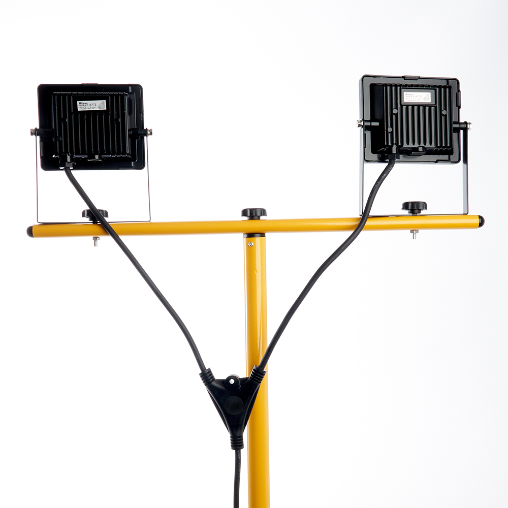 Прожектор с солнечной панелью на штативе, (ДО) FERON LL-502, 2*30W, 6400К (холодный белый), 230V/50Гц, 5400Lm, IP65, угол рассеивания 120°,*SMD2835, раб.t -40°C - +45°C, цвет черный-желтый, корпус алюминий литой под давлением + стекло, 670*500*1660 (штатив+ голова) мм