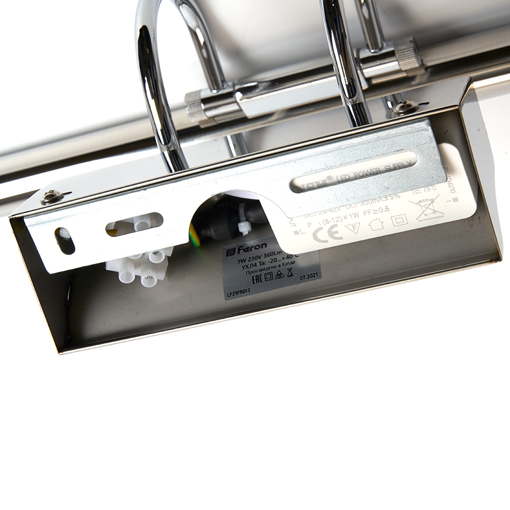 Подсветка настенная светодиодная (для зеркал/картин) FERON AL5071 хром, 7W, 4000К (белый), 230V, 360Lm, корпус нержавеющая сталь, рассеиватель пластик PC, IP20, 455*130*130мм,