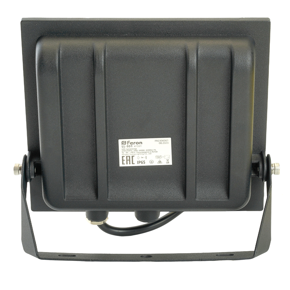 Прожектор светодиодный многоматричный с монтажным креплением на кронштейн, (ДО) FERON LL-931, 70W, 6400К (холодный белый), 230V/50Гц, 7000Lm, IP65, угол рассеивания 120°,*SMD2835, раб.t -40°C - +40°C, цвет чёрный, корпус алюминий литой под давлением + стекло, 183*169*29 мм