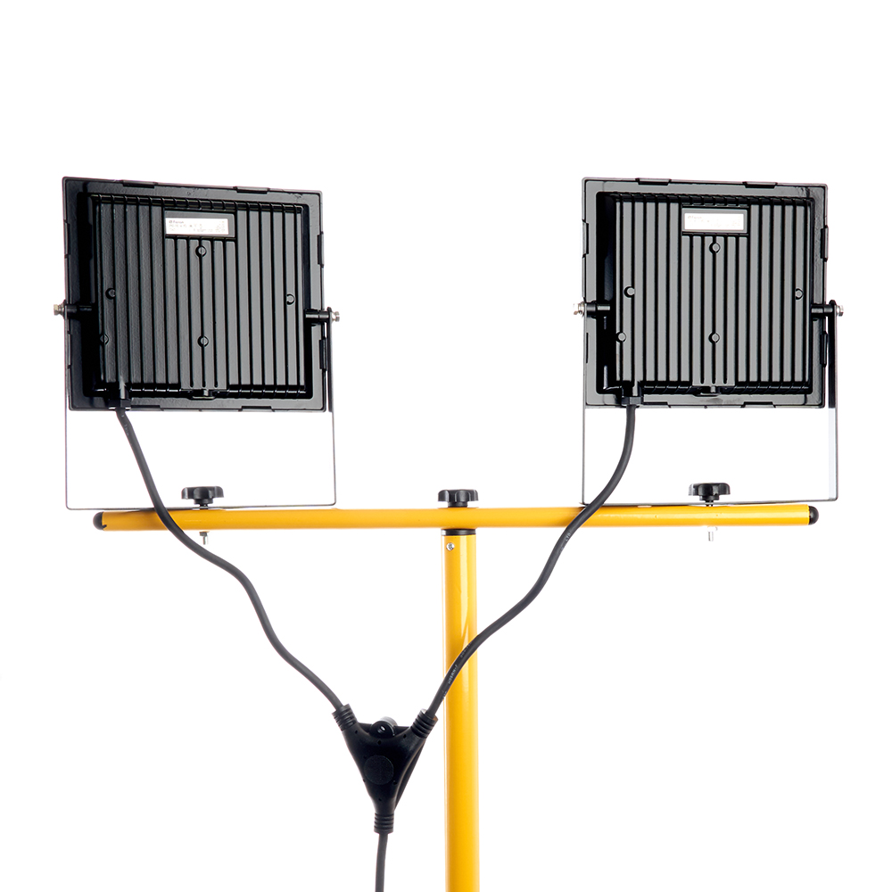 Прожектор с солнечной панелью на штативе, (ДО) FERON LL-504, 140W, 6400К (холодный белый), 230V/50Гц, 12600Lm, IP65, угол рассеивания 120°,*SMD2835, раб.t -40°C - +45°C, цвет черный-желтый, корпус алюминий литой под давлением + стекло, 670*525*1685мм (штатив+ голова) мм