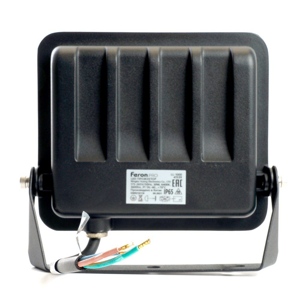 Прожектор светодиодный многоматричный с монтажным креплением на кронштейн, (ДО) FERON LL-1000, 30W, 6400К (холодный белый), 175-265V/50Гц, 3600Lm, IP65, угол рассеивания 120°,*OSRAM, раб.t -40°C - +70°C, цвет чёрный, корпус алюминий литой под давлением + стекло, 164.5*34*153 мм