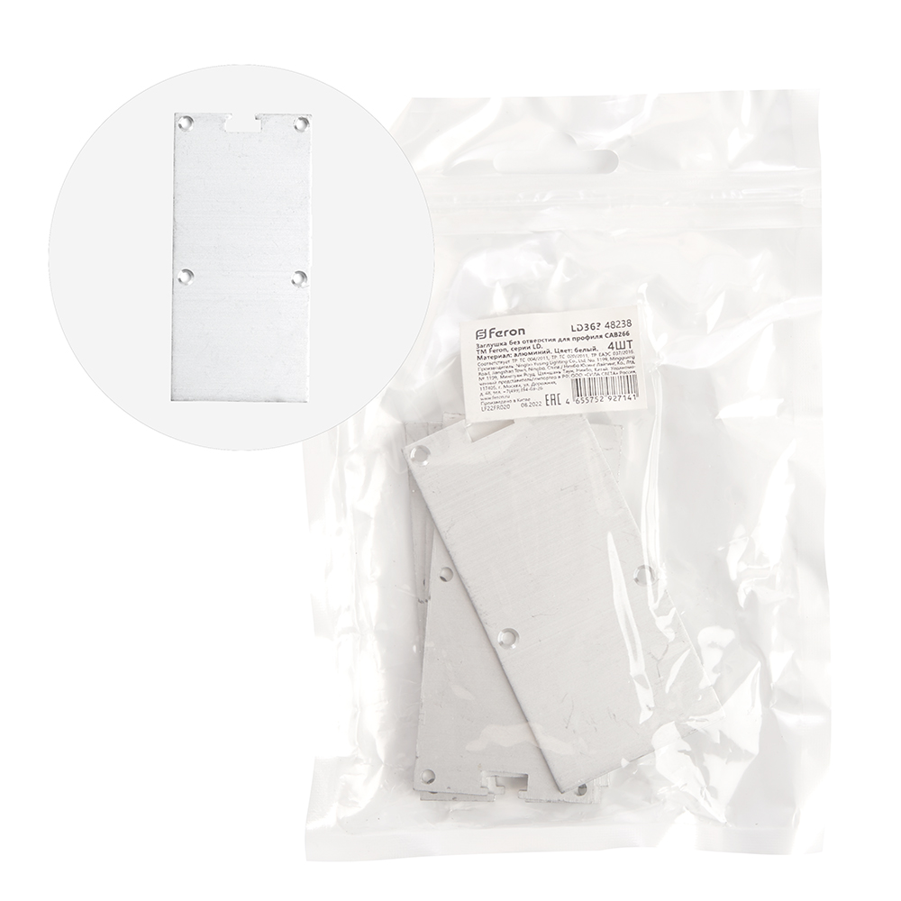 Заглушка для профиля FERON LD363 «без отверстия», цвет серебро, в комплекте 4 шт, 73*2*35мм