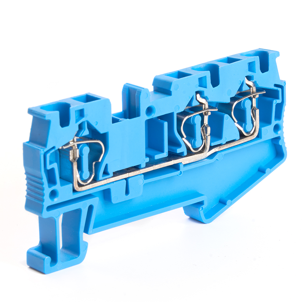 LD553-2-40 ЗНИ Зажим пружинный, 3-проводной проходной 4.0 мм²  (JXB ST 4), синий