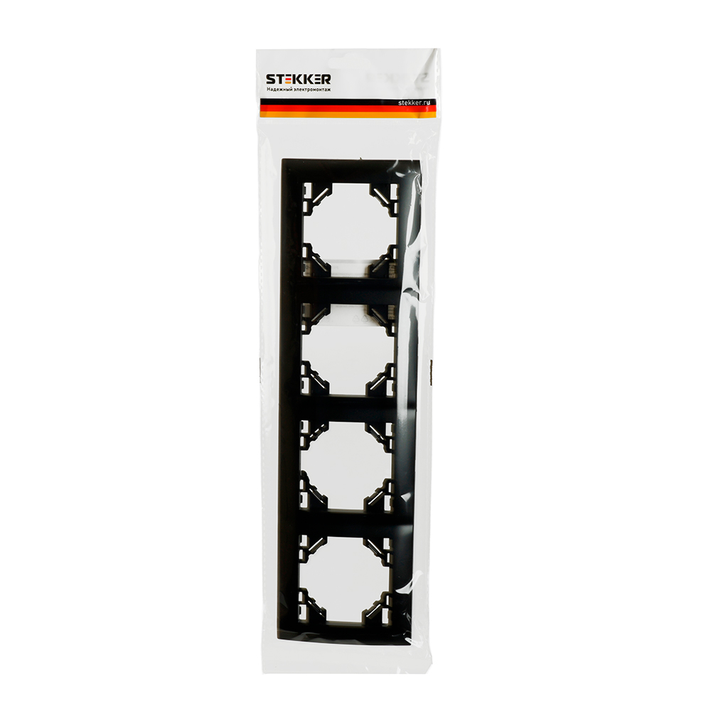 Рамка STEKKER PFR00-9014-03 (расстояние между монтаж. отверестиями: по гориз. - 270мм, по вертик.- 45мм) на гнездо, , . Материал: ABS пластик, цвет черный, размер 296*83*11мм. Номинальное напряжение , номинальный ток , диапазон рабочих температур ,