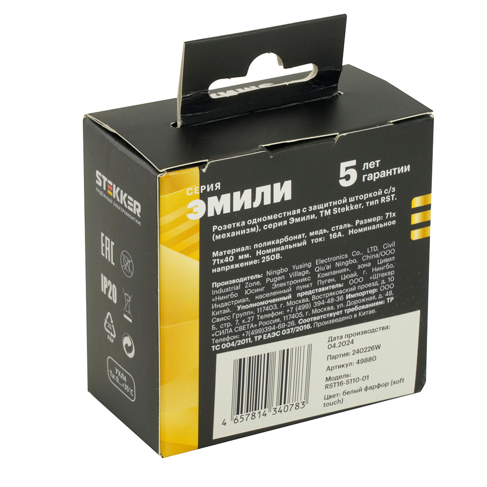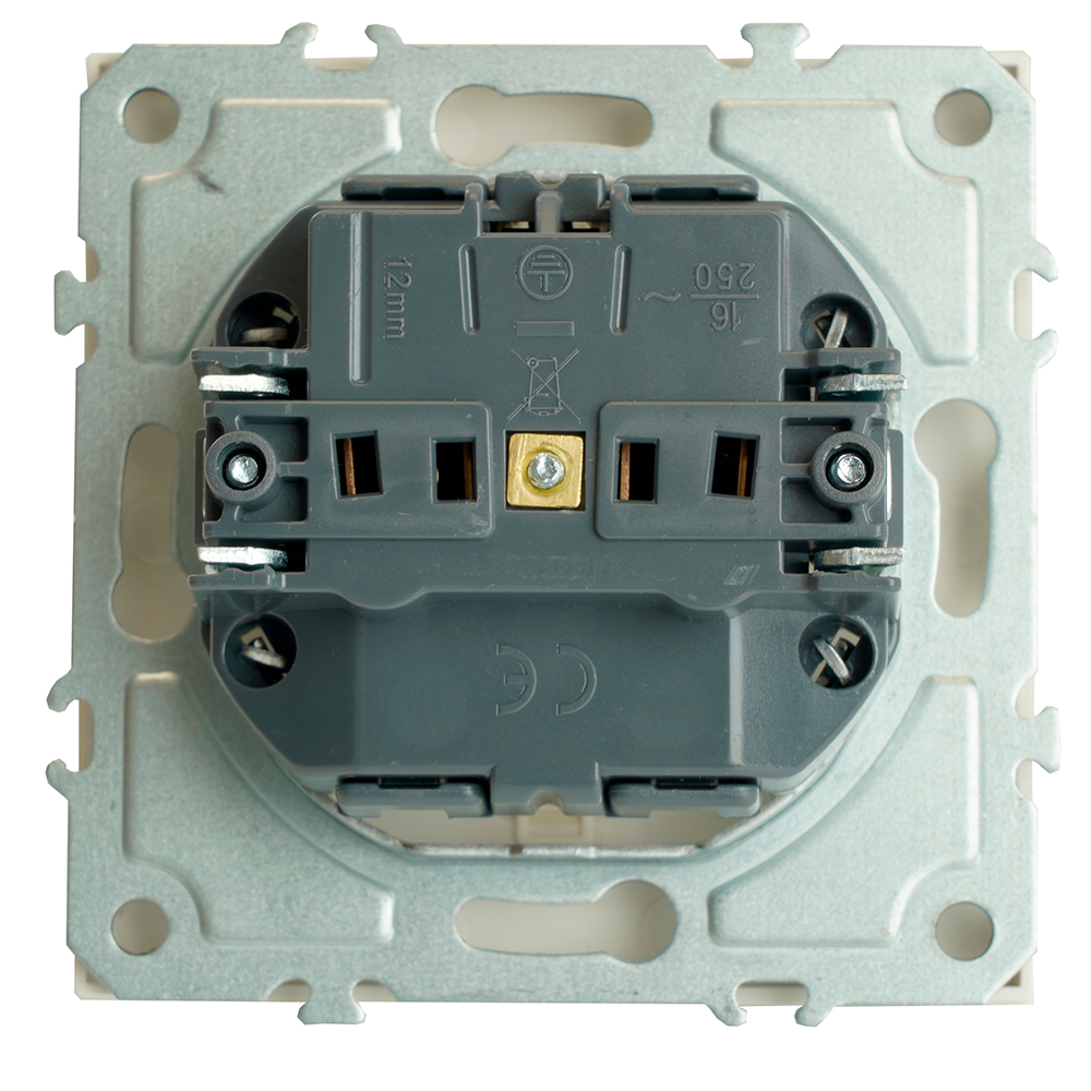 Розетка  STEKKER RST16-5110-01 на 1 гнездо, -, с заземлением. Материал: поликарбонат, бронза, сталь, цвет белый фарфор, soft touch, размер 71*71*40мм. Номинальное напряжение 250, номинальный ток 16А, диапазон рабочих температур  0..+35°C, 20